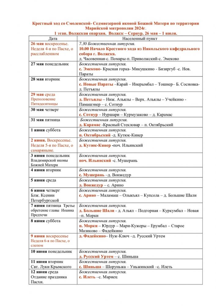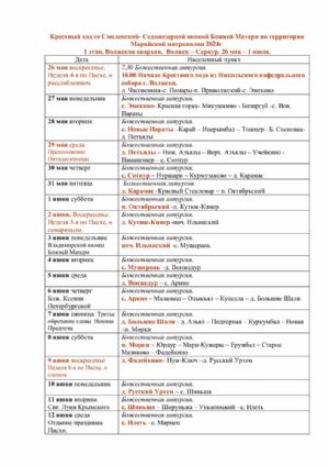 Расписание крестного хода Волжск - Сернур 2024 с иконой Божией Матери Одигитрия "Седмиезерная":
