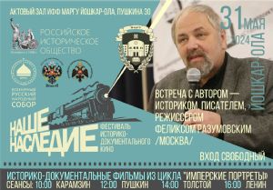 Жителям Йошкар-Олы будут представлены фильмы, которые расскажут о выдающихся личностях в истории России: 4 историко-документальных фильма цикла телепрограмм «Кто мы?» из серии «Имперские портреты». После каждого кинопросмотра состоится встреча с автором фильмов, известным российским историком, писателем, автором исторического цикла телепередач «Кто мы?» Феликсом Вельевичем Разумовским. Он проведёт беседу по теме фильма, ответит на вопросы.
