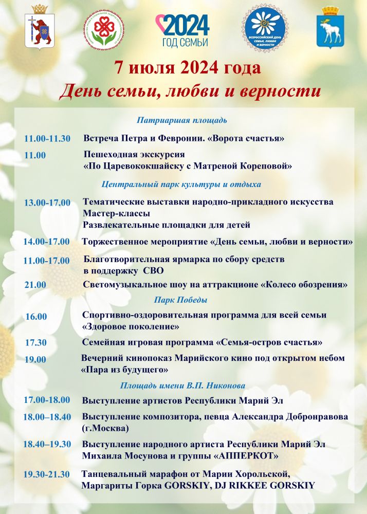 Программа празднования Дня семьи, любви и верности в Йошкар-Оле 1230