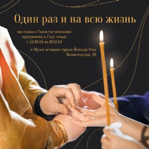 24 октября в 16:00 в Музее истории города Йошкар-Олы состоится открытие выставки, посвященной таинству Венчания – «Один раз и на всю жизнь».