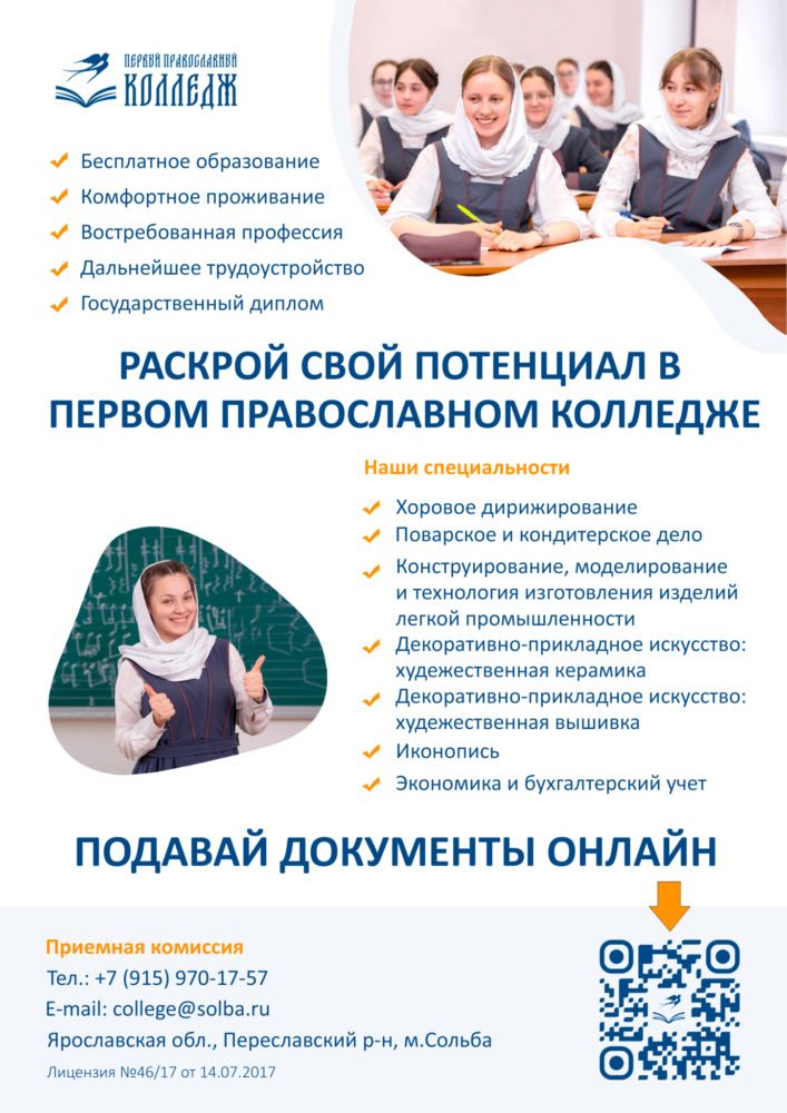Подробнее с условиями поступления можно познакомиться на сайте Первого православного колледжа: https://college.solba.ru/