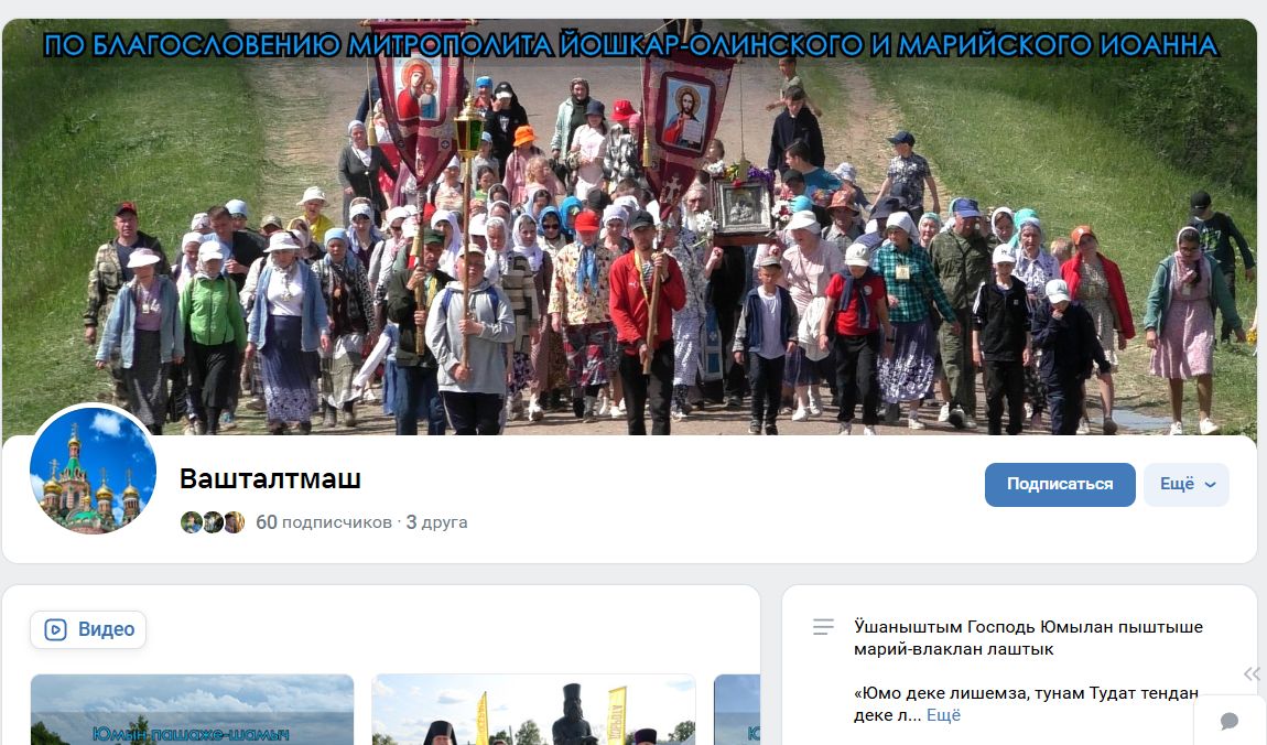 По благословению митрополита Йошкар-Олинского и Марийского Иоанна в социальной сети «ВКонтакте» открылась группа «Вашталтмаш» (Преображение). В этой группе публикуются православные фильмы, видеоинтервью, видеосюжеты, радиопередачи на марийском языке, подготовленные сотрудниками Переводческой комиссии Марийской митрополии Алевтиной Таныгиной и Святославом Орзаевым.