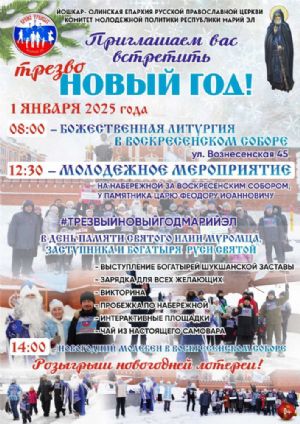 1 января в Воскресенском соборе г. Йошкар-Олы пройдет духовно-оздоровительная акция «Трезвый Новый год».