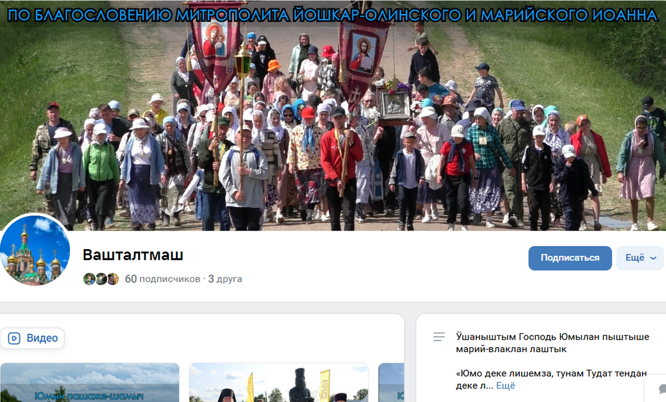По благословению митрополита Йошкар-Олинского и Марийского Иоанна в социальной сети «ВКонтакте» открылась группа «Вашталтмаш» (Преображение).