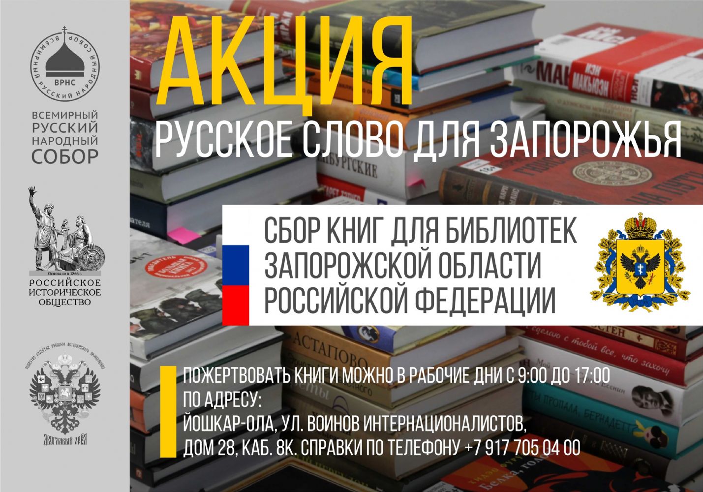 Отделение Всемирного Русского Народного Собора в Республике Марий Эл начинает акцию по сбору книг для библиотек и школ освобожденной земли русского Запорожья.
