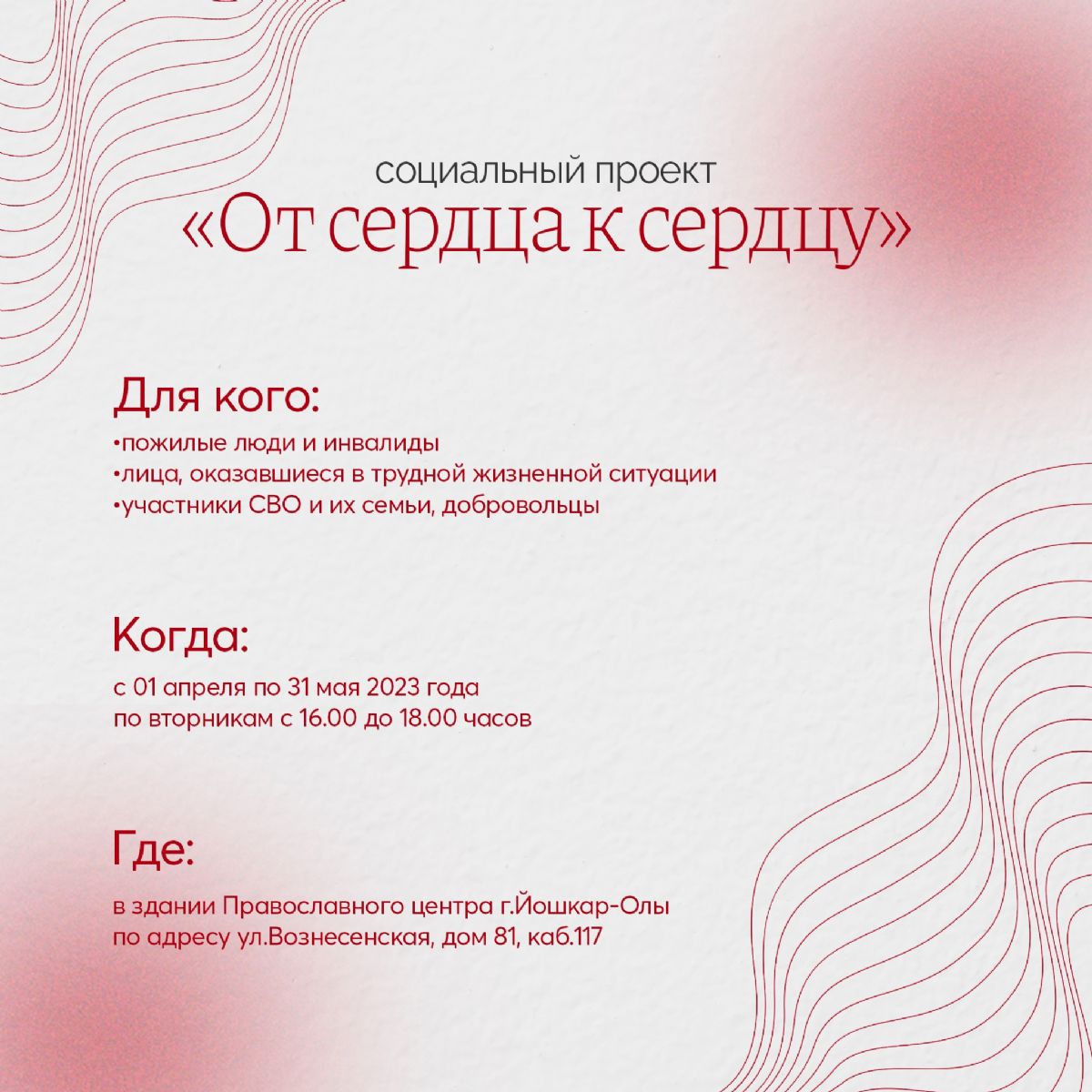 В рамках проекта планируется оказывать юридическую и социально-психологическую помощь людям, находящимся в трудной жизненной ситуации.