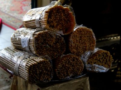 По заамвонной молитве священством во главе с архиереем было совершено славление праздника и чин освящения свечей.