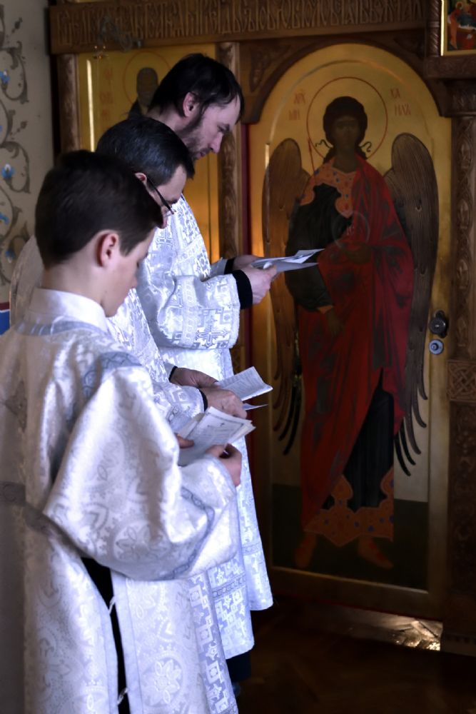 Читались отрывки из посланий к Евреем (3 глава) о терпении, к Солунянам (Фессалоникийцам) (4 глава) о втором пришествии Господа Иисуса, из Евангелия от Марка (1 глава) об очищении прокаженного и из Евангелия от Иоанна (5 глава) о воскресении мертвых.