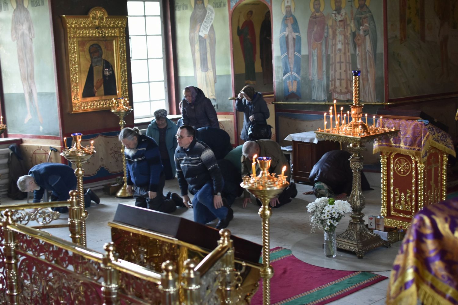 После за амвонной молитве Владыка с сослужащим духовенством последний раз в этом году прочитал молитву Ефрема Сирина и сделал земные поклоны.