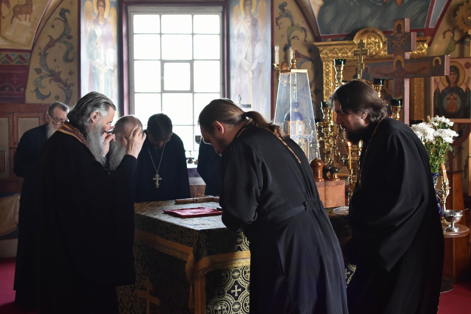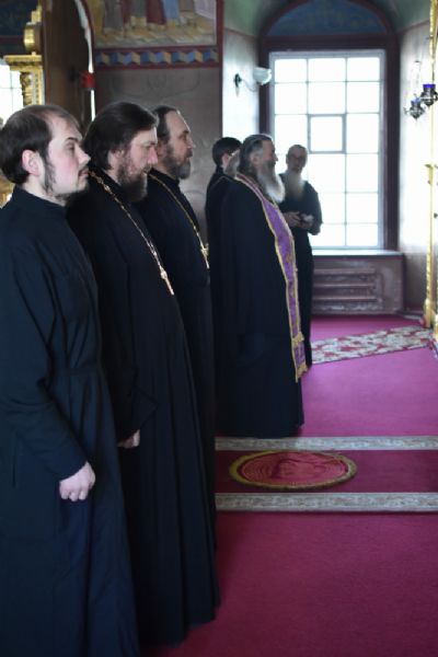 23 апреля в Успенском храме Владыке сослужили настоятель храма протоиерей Сергий Филонов, клирики храма иереи Алексий Михеев, Никита Иванов и диакон Александр Мельников.