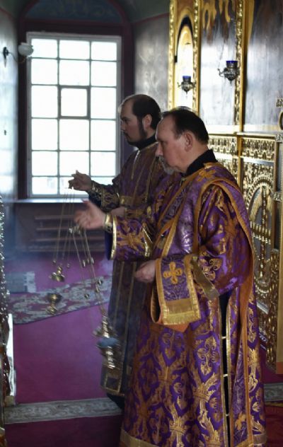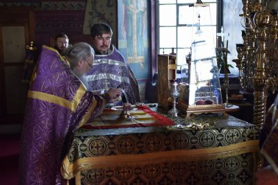 За Божественной литургией читались отрывки из книги Исход (2 глава) о бегстве Моисея в землю Мадиамскую, из книги Иова (2 глава) о страданиях праведного Иова и из Евангелия от Матфея (26 глава) о помазании Господа Иисуса благовонным миром в Вифании.
