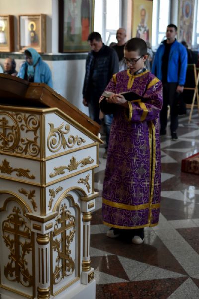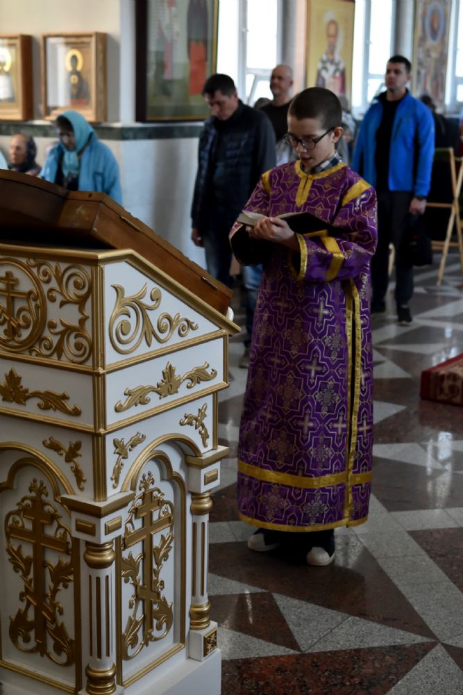 За Литургией читались отрывки из книг Исход (о подготовке людей к принятию Божия откровения), Иова (ответ Бога о непостижимости Его дел), Исаии (о страдании и помощи Божией), послания апостола Павла к Коринфянам (11 глава) об отношении к Евхаристии и составное чтение из Евангелия от Матфея, Луки и Иоанна о событиях, связанных с Тайной вечерей.