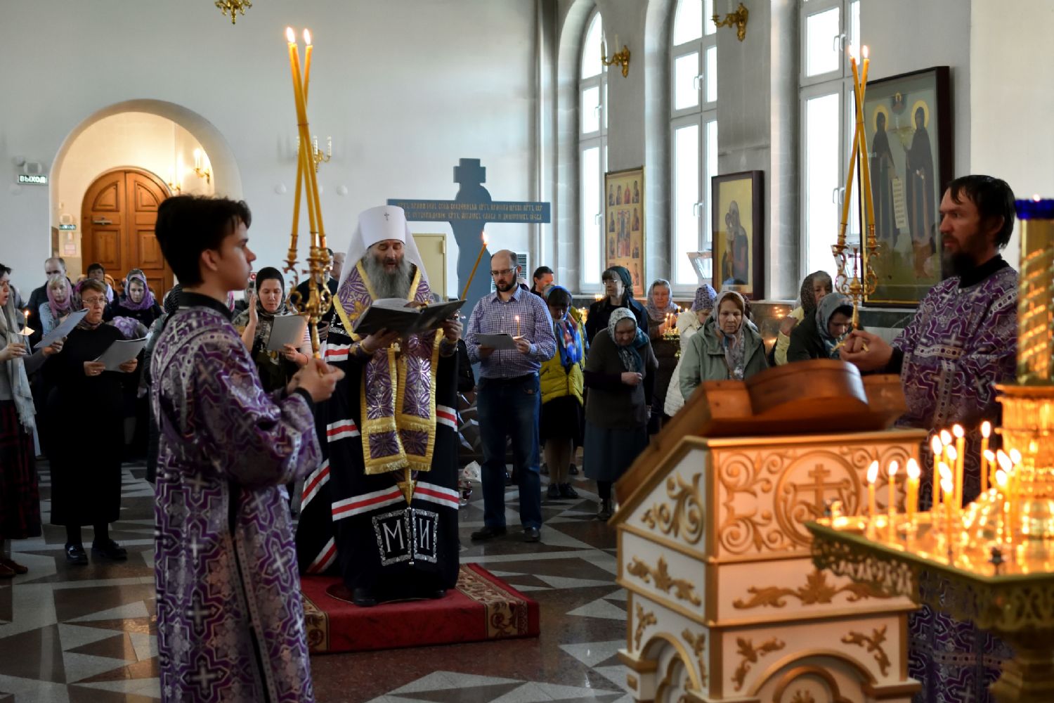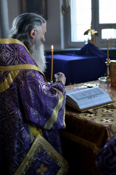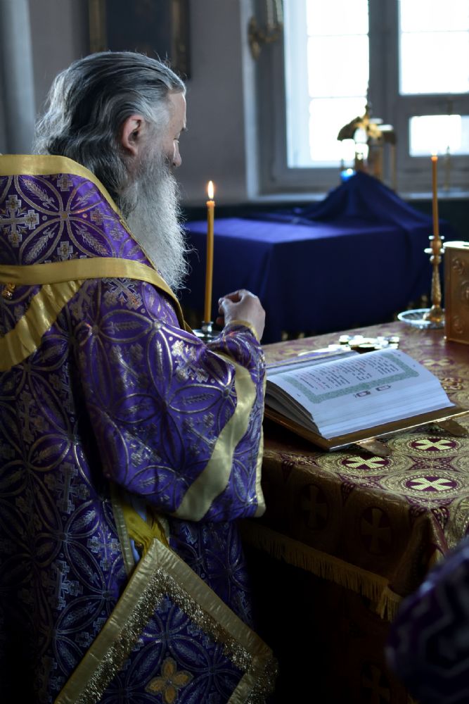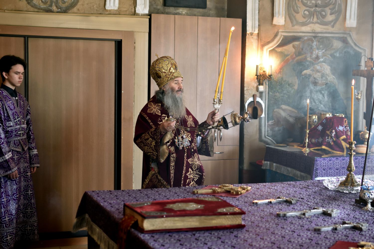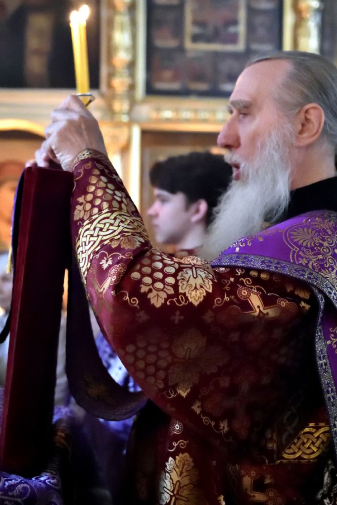 На малом повечерии в центре храма митрополит Иоанн прочитал канон преподобного Андрея Критского из трех песен посвященный воспоминанию Тайной Вечери и предательства Иуды.