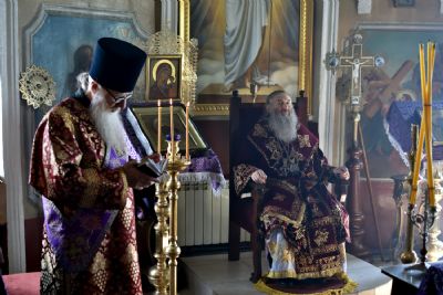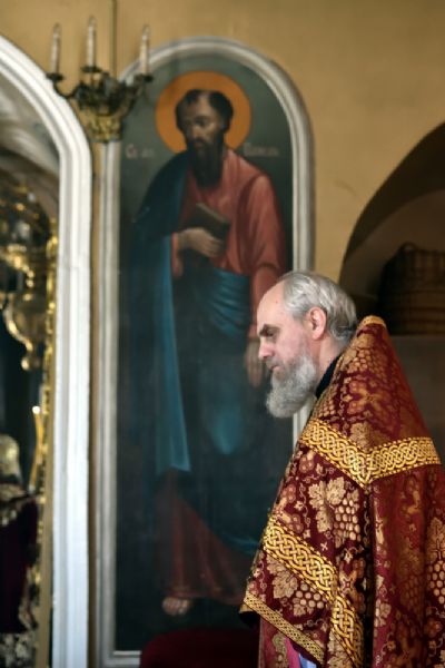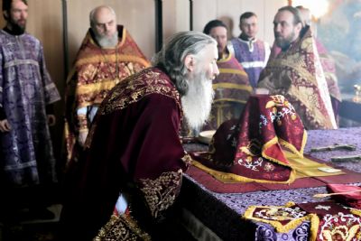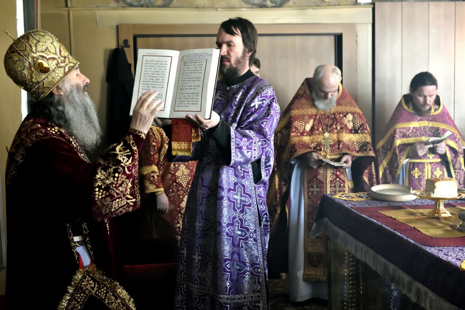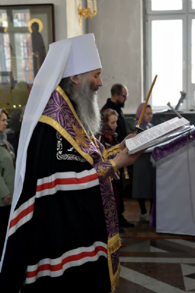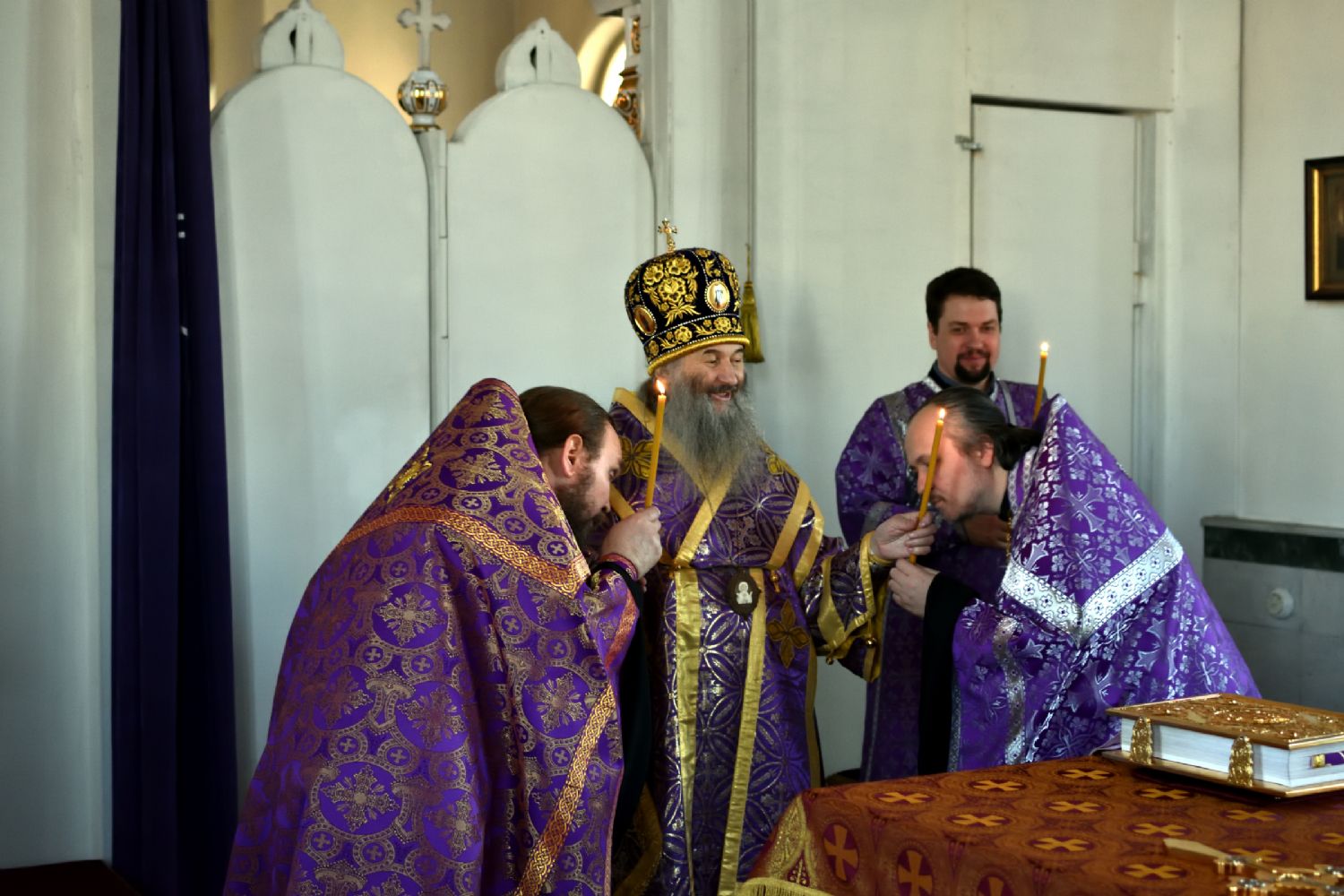 На малом повечерии в центре храма митрополит Иоанн прочитал канон преподобного Андрея Критского из трех песен посвященный воспоминанию Тайной Вечери и предательства Иуды.