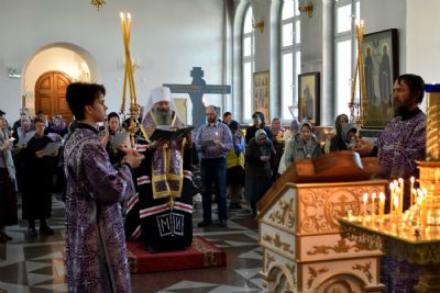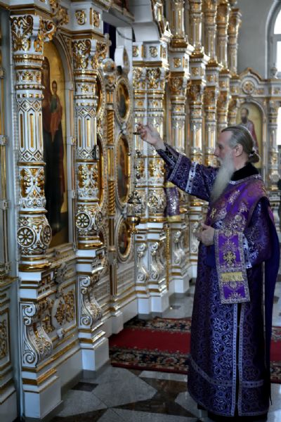 24 апреля накануне дня воспоминания Установления Тайной вечери (Таинства Евхаристии - Литургии) митрополит Иоанн возглавил Малое повечерие и Утреню в Воскресенском соборе г. Йошкар-Олы.