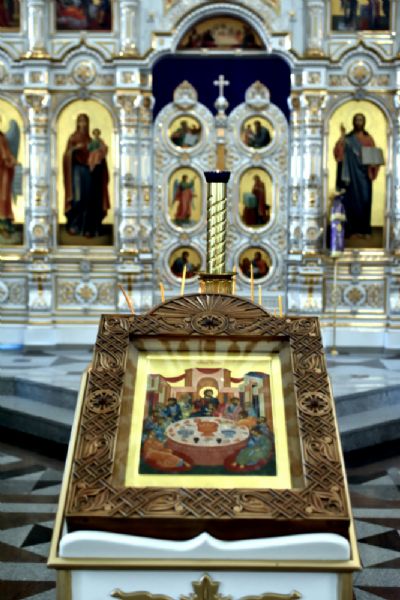 На Утрене в алтаре с престола Владыка прочитал Евангельский отрывок (Евангелие от Луки 22 глава) о Тайной Вечери.