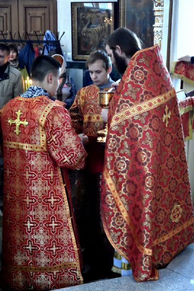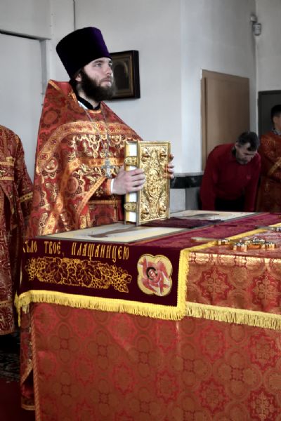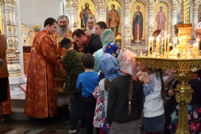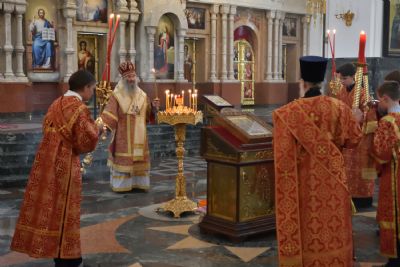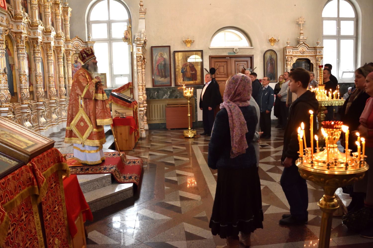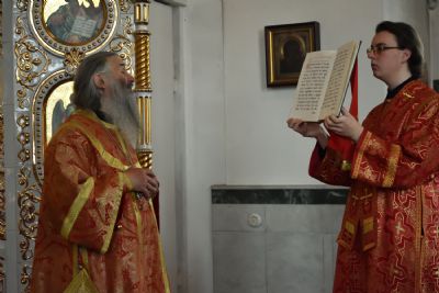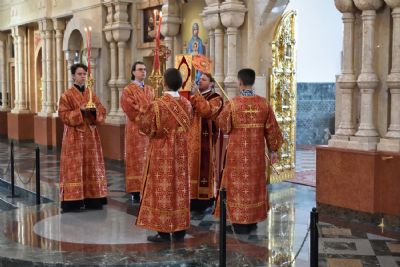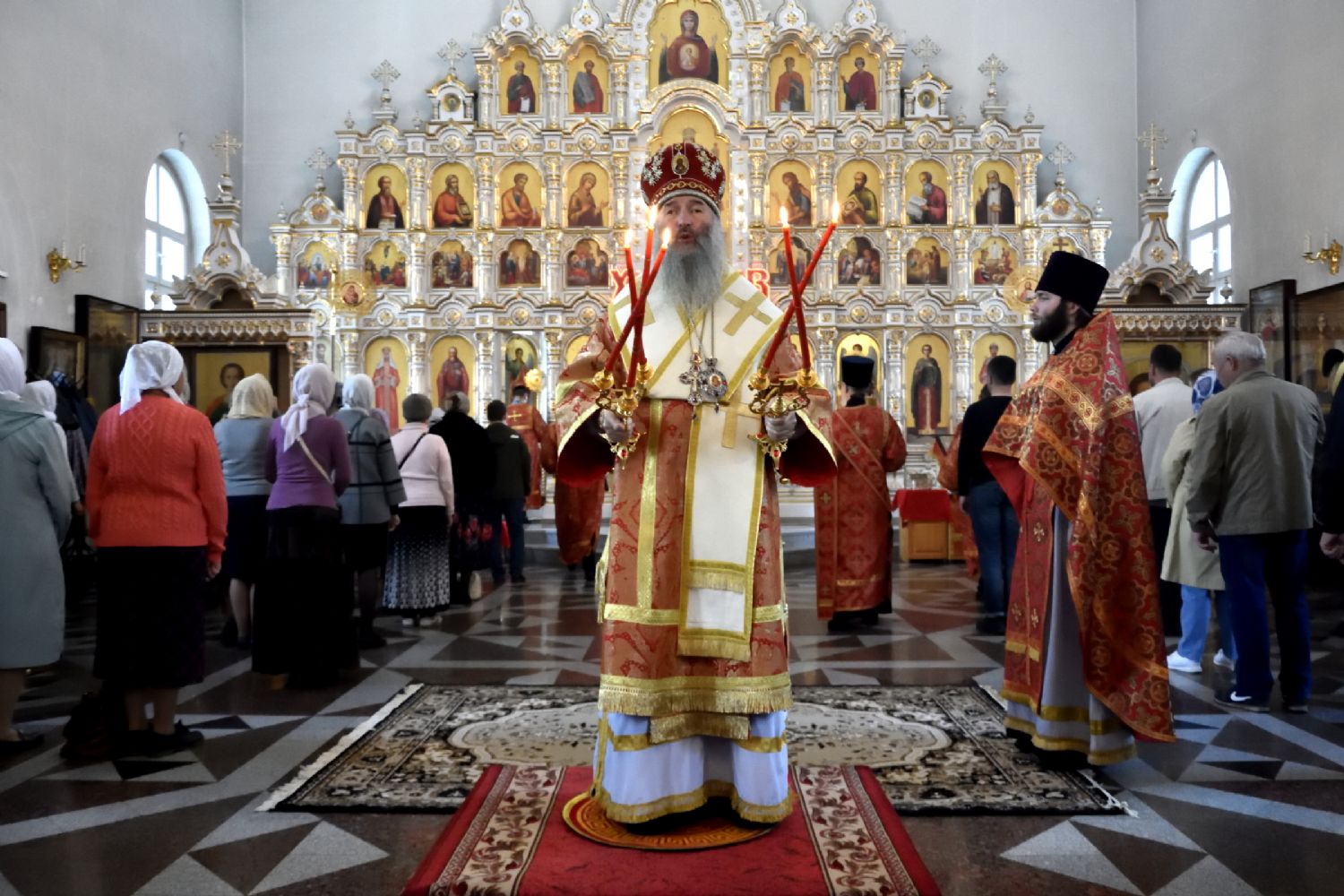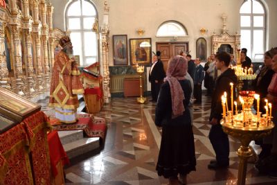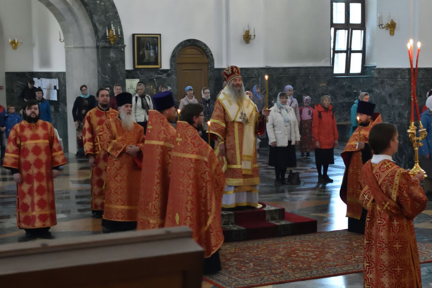 Владыке сослужили: ключарь собора протоиерей Сергий Поглазов, клирики собора иереи Никифор Захаров, Евгений Самойлов, диаконы Андрей Дружинин, Игорь Коваль и клирик храма Рождества Пресвятой Богородицы с. Семеновка протодиакон Михаил Козловский. Песнопения исполняли младшая и старшая группы хора "Благовест".