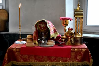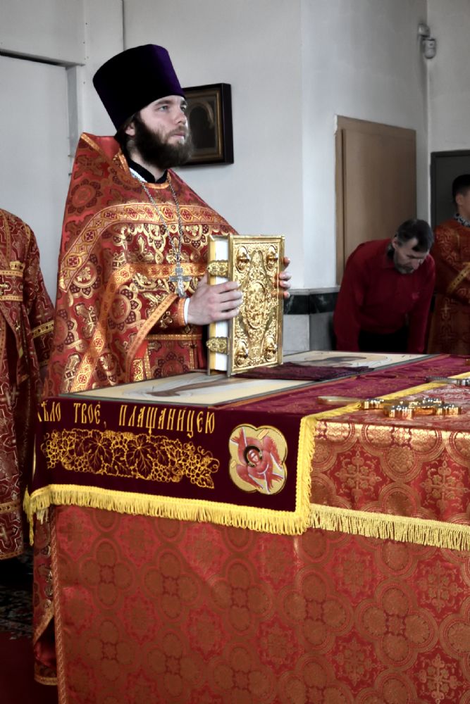 Сослужили архипастырю: настоятель собора иерей Алексий Кирюшкин, клирик собора диакон Алексий Кузнецов, клирик храма Рождества Пресвятой Богородицы с. Семеновка протодиакон Михаил Козловский.