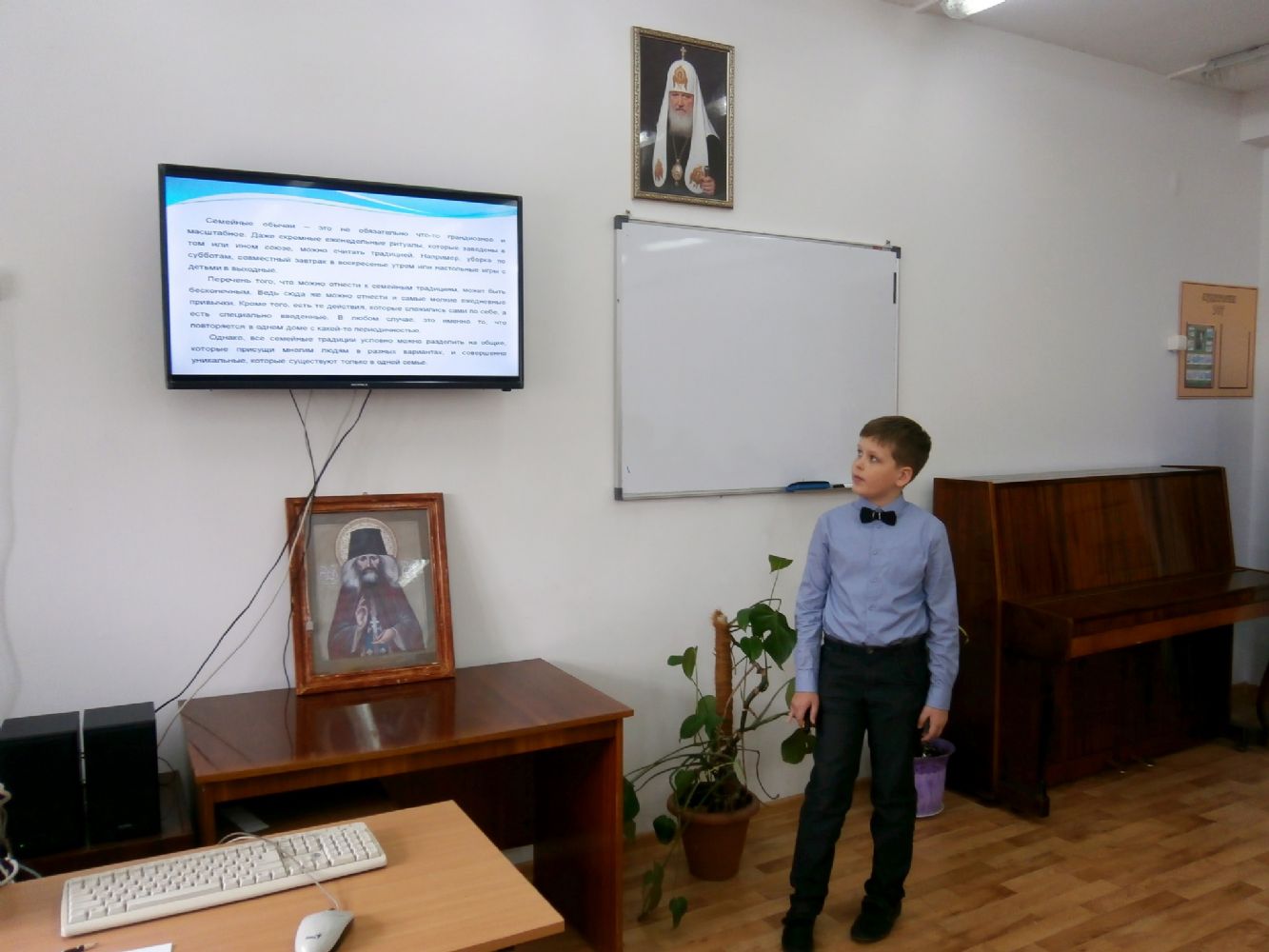 В каждое выступление дети вкладывали частичку своей души. В номинации «Духовные традиции моей семьи» ребята с большой любовью и нежностью рассказывали о своих родителях, с гордостью и печалью – о военных заслугах своих предков. Рассказали четвероклассники и о любимых их семьями праздниках, о семейных традициях, о своей вере. По решению жюри первое место в этой номинации присуждено Петунину Степану, учащемуся гимназии № 4 (проект «Духовные традиции моей семьи»). Второе место заняла Киреева Мария, учащаяся гимназии № 14 (проект «Духовные традиции моей семьи»). Третье место поделили Наумова Ульяна, учащаяся средней школы № 16 (проект «Бессмертный полк – наша семейная традиция») и Петухов Сергей, учащийся средней школы № 12 (проект «Духовные традиции моей семьи»).