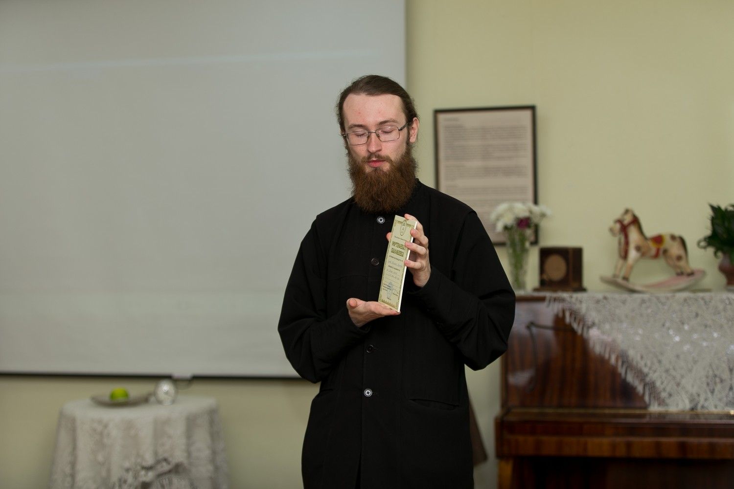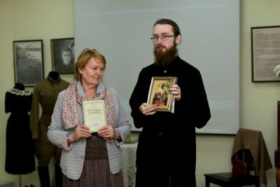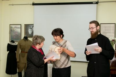 В завершении мероприятия директор паломнической службы чтец Григорий Михеев поблагодарил руководство и сотрудников музея истории города за сотрудничество и вручил директору музея небольшой сувенир из Крыма.
