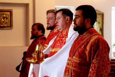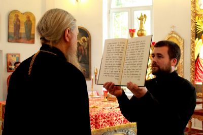 Его Преосвященству сослужили клирики собора.