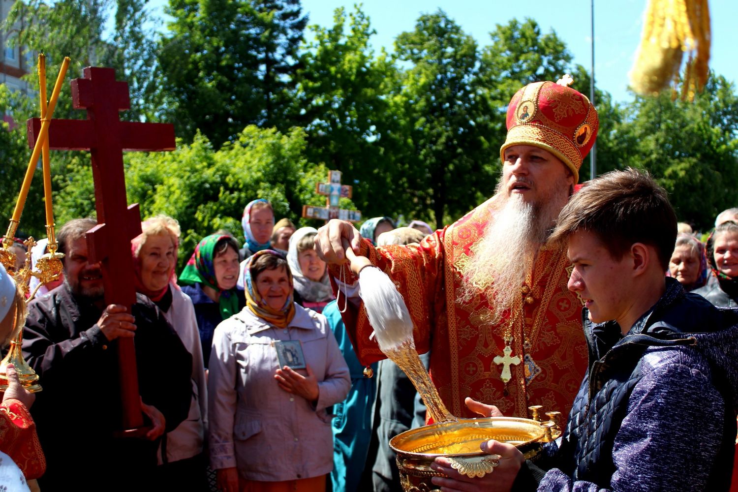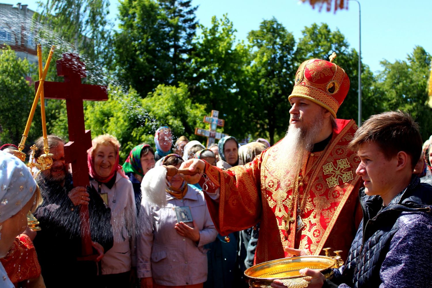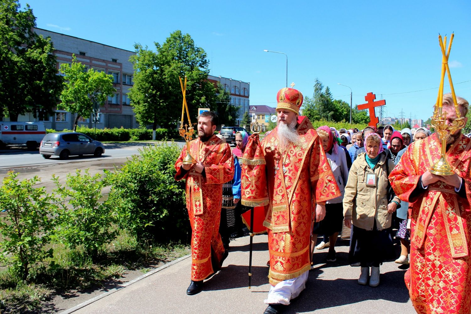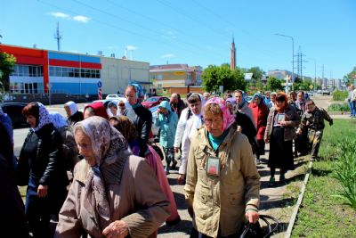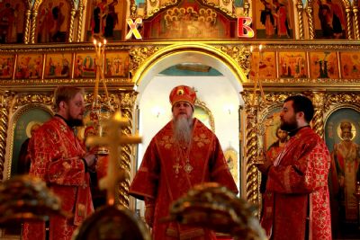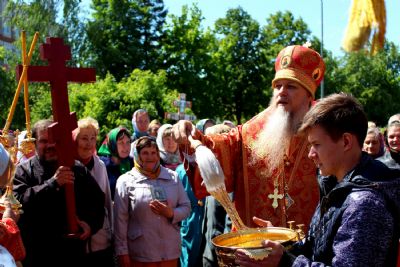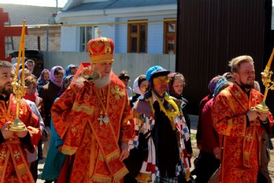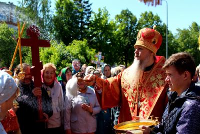 По окончании богослужения епископ Феофан возглавил крестный ход от кафедрального Никольского собора по улицам города и молебен в соборе.
