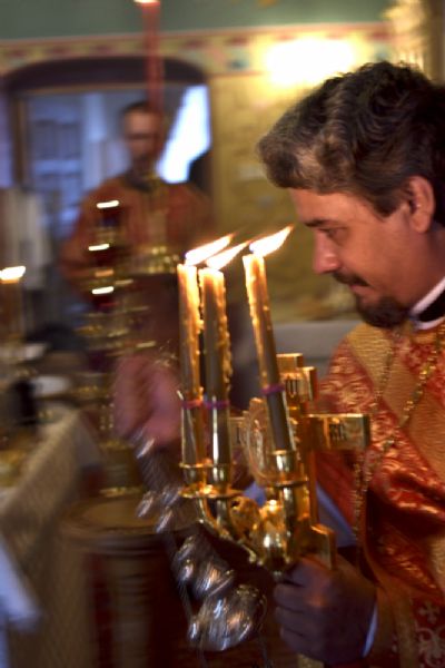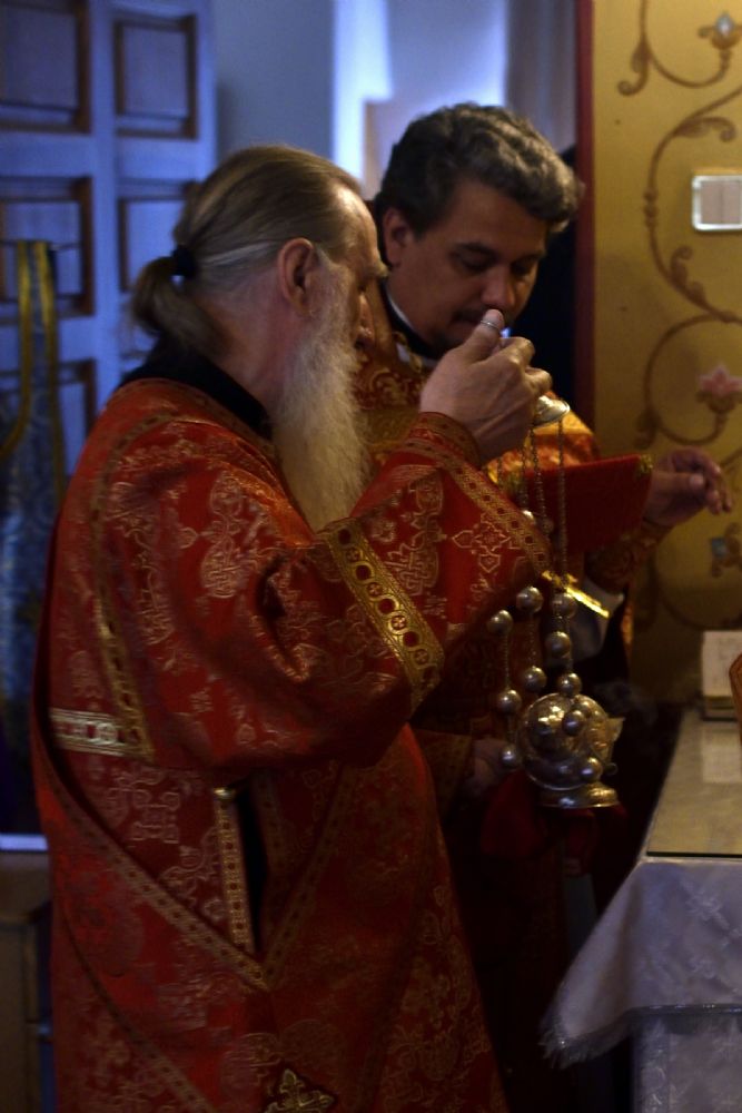 На Литургии читались отрывки из Деяний апостолов (18 глава) об апостоле Аполлосе и из Евангелия от Иоанна (12 глава) проповедь Иисуса Христа о Себе как о Свете мира.
