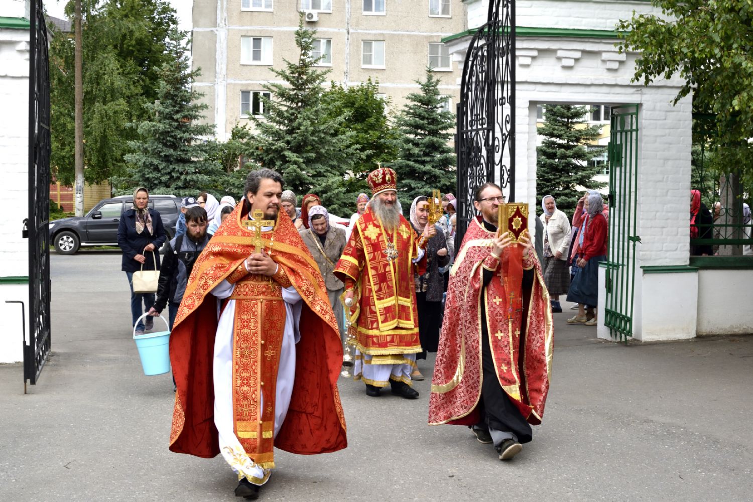 После Литургии прошел крестный ход с чтением Евангелия и кроплением святой водой. Затем Владыка обратился с проповедью к собравшимся, призывая пребывать весь год в пасхальной радости.
