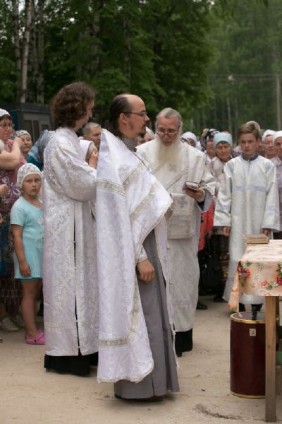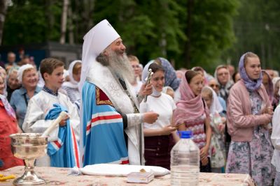 Владыке сослужили клирик храма Успения Пресвятой Богородицы г. Йошкар-Ола иерей Алексей Михеев и клирик храма Рождества Пресвятой Богородицы с. Семеновка протодиакон Михаил Козловский. Песнопения исполнял детско-юношеский хор "Благовест" под руководством регента Татьяны Черновой.