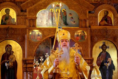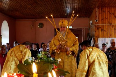 Владыка поблагодарил настоятеля протоиерея Евгения Панина за труды на благо прихода и поздравил всех собравшихся с престольным праздником, пожелав многая и благая лета.