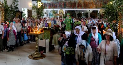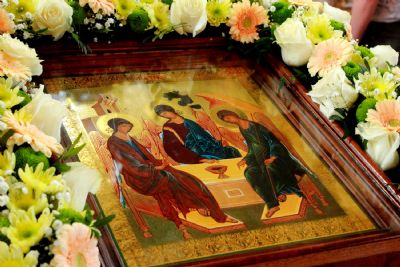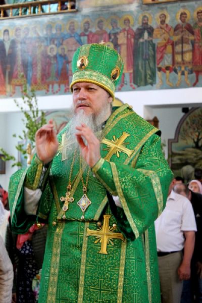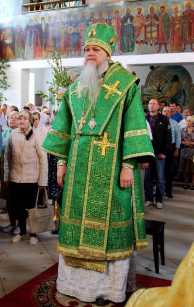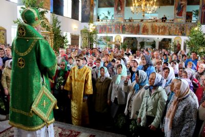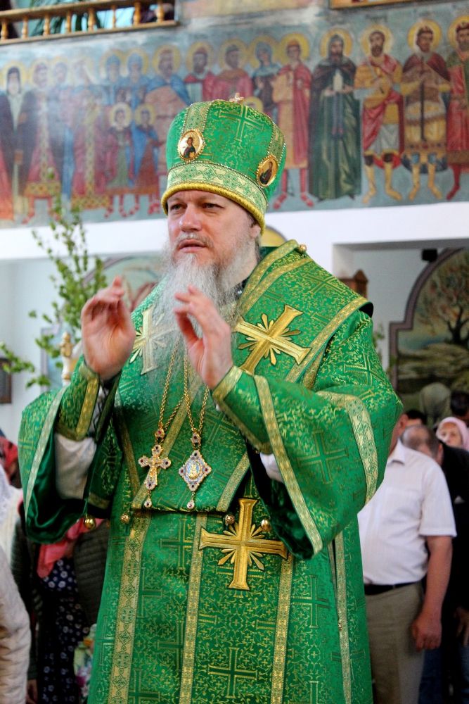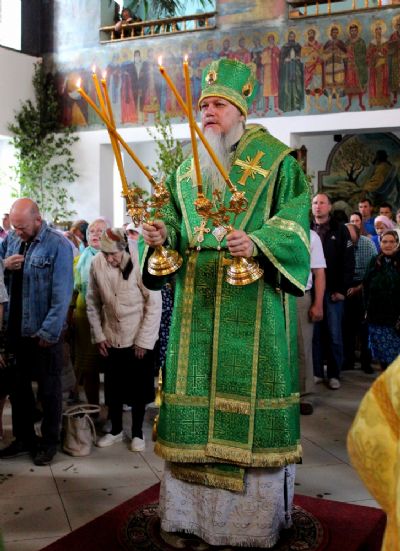 В завершение Богослужения Его Преосвященство поздравил духовенство и прихожан с Днем Святой Троицы - днем рождения Церкви, после чего обратился к верующим с архипастырским словом, в котором раскрыл духовный смысл праздника:
