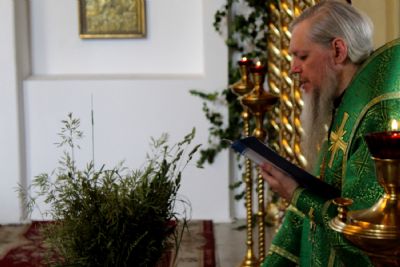 По окончании Литургии архипастырь совершил великую вечерню праздника Пятидесятницы с чтением коленопреклонных молитв.