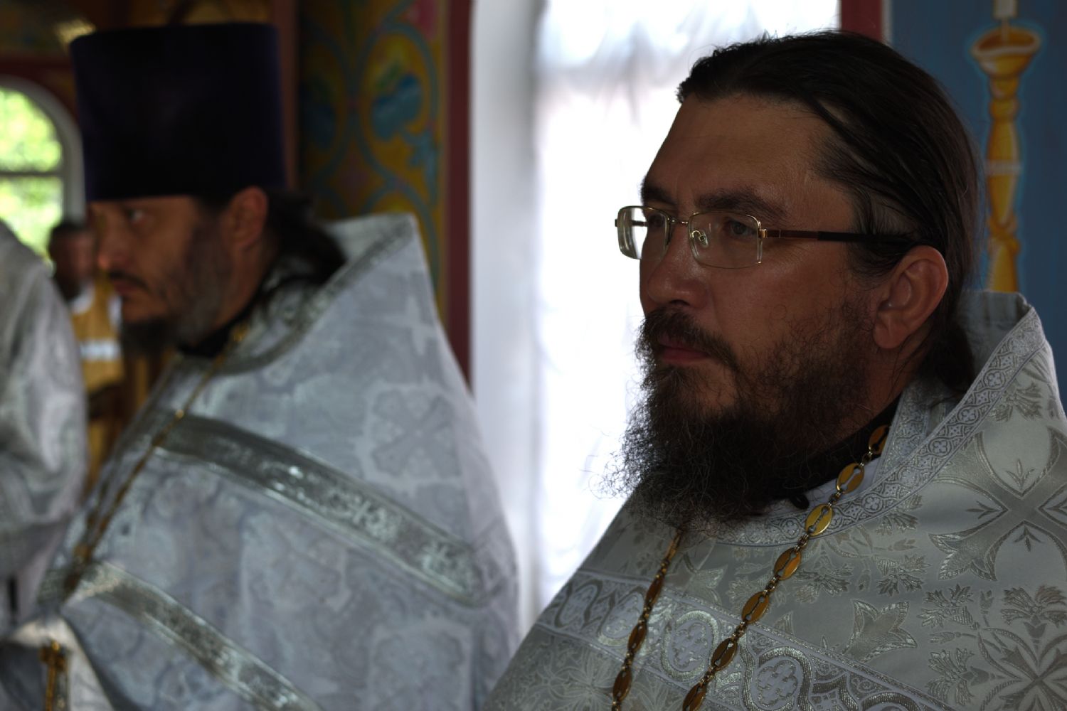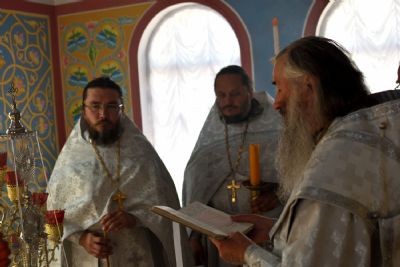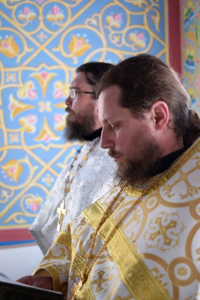 Владыке сослужили благочинный Луговомарийского округа протоиерей Алексий Никитин, настоятель храма преподобномученика Андрея Критского с. Елембаево протоиерей Сергий Бажанов, настоятель храма Покрова Пресвятой Богородицы п. Кокшайск иерей Алексий Леонов, настоятель Свято-Троицкого храма с. Красный Яр иерей Михаил Репин и клирик храма Рождества Пресвятой Богородицы с. Семеновка протодиакон Михаил Козловский. Песнопения исполнял хор под руководством регента Ольги Акилбаевой.