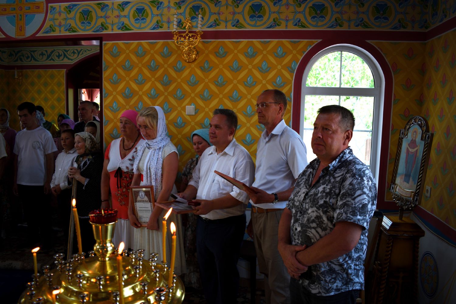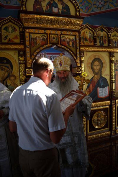 Митрополит Иоанн объяснил детали и значение чинопоследования освящения храма в проповеди после Литургии, вручил Благодарственные письма строителям и жертвователям.