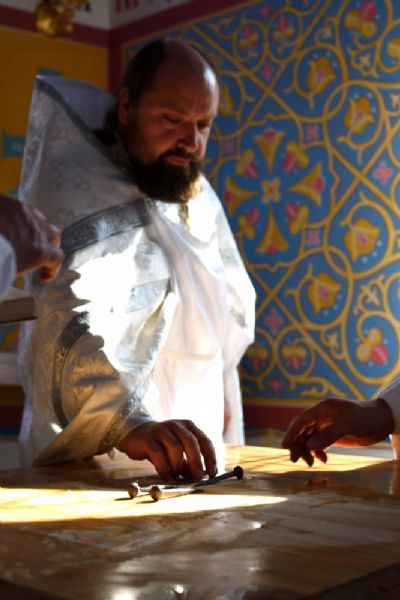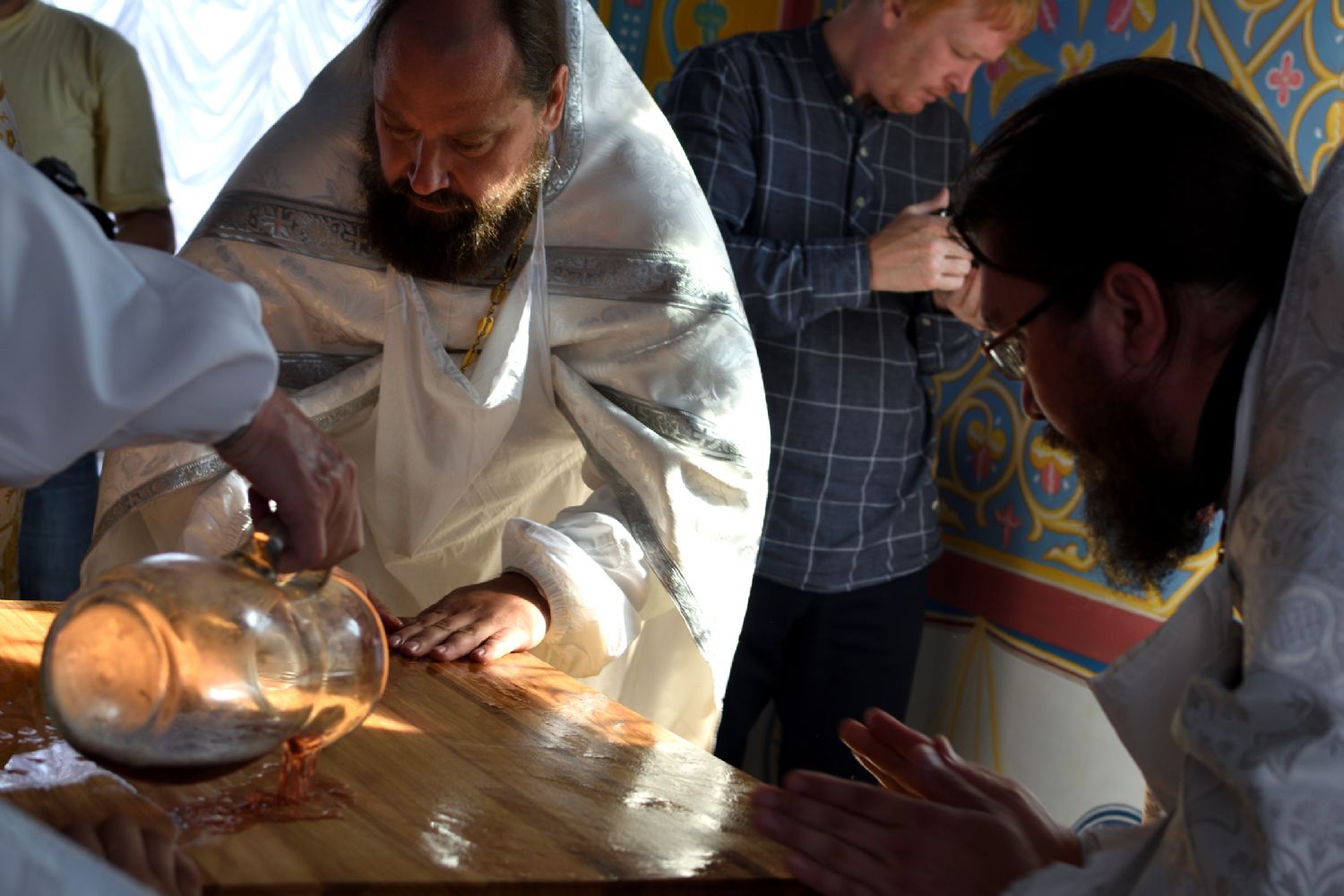 После встречи и облачения в центре храма начался чин Великого освящения храма.