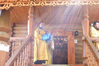 В конце службы священство вышло в центр храма для славления Пресвятой Богородицы: пропели тропарь, кондак и величание перед иконой Пресвятой Богородицы «Достойно есть...».