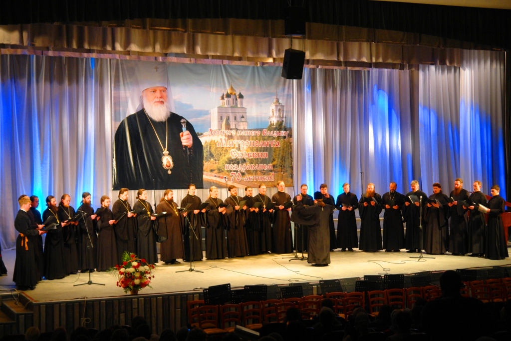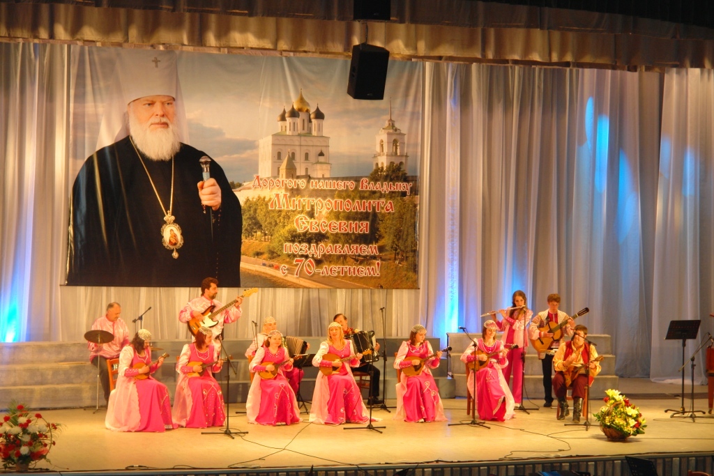 Торжественный прием завершился праздничным концертом в честь 70-летия митрополита Псковского и Великолукского Евсевия в Большом Концертном Зале Областной Филармонии, на котором выступили: сводный церковный хор епархии, хор Свято-Троицкого Кафедрального собора, храма святого благоверного князя Александра Невского, духовного училища, любительский хор Псково-Печерского монастыря, сводный хор священников, а также сводный детский хор епархии.