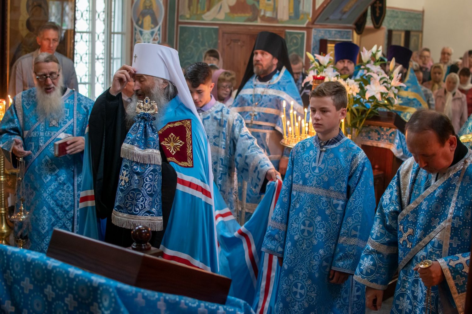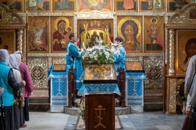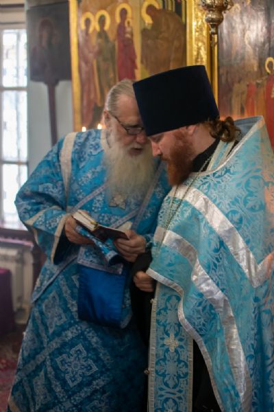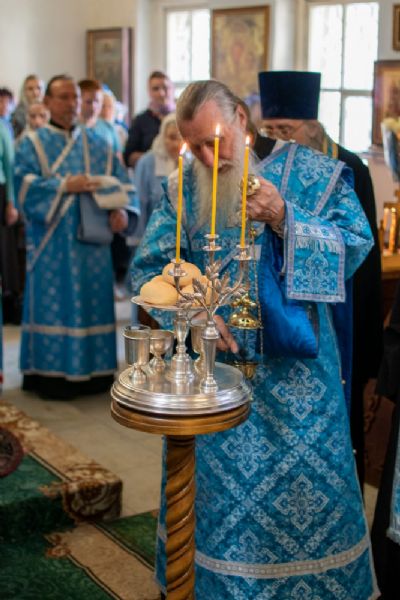 Богослужение началось торжественной встречей митрополита Иоанна. За богослужением читались отрывки из Ветхозаветных книг (Бытия, Притч Соломона и пророка Иезекииля) прообразующие Матерь Божию, освящались хлеба, пшеница, вино и елей, читалось Евангелие от Луки о встрече Девы Марии и Елисаветы.