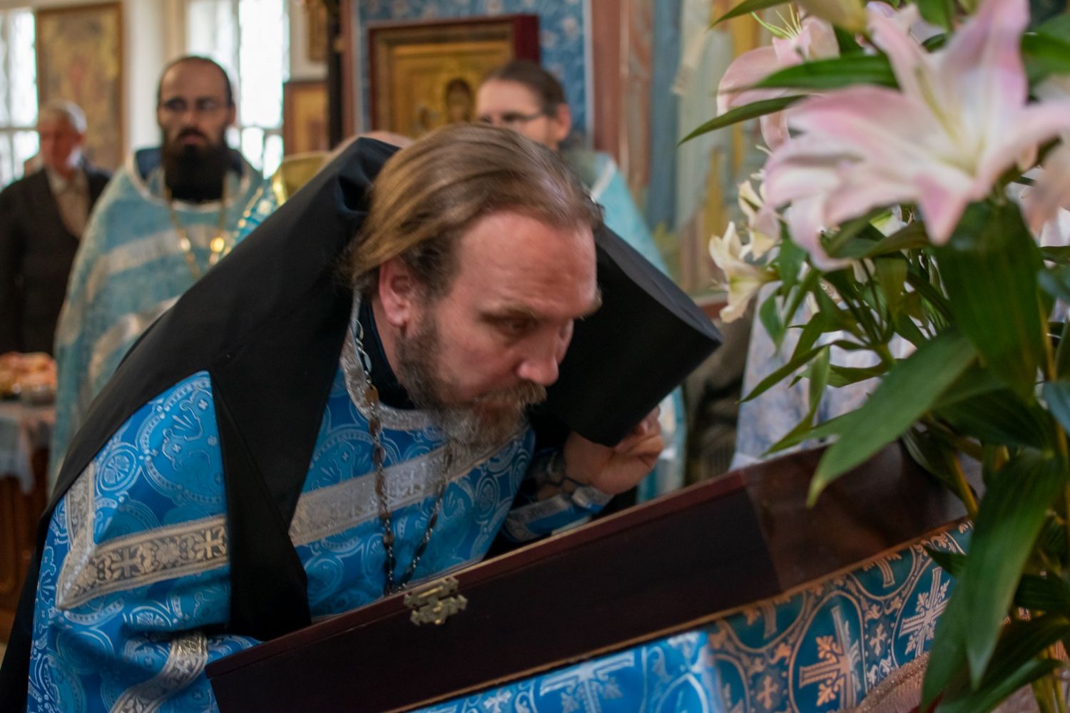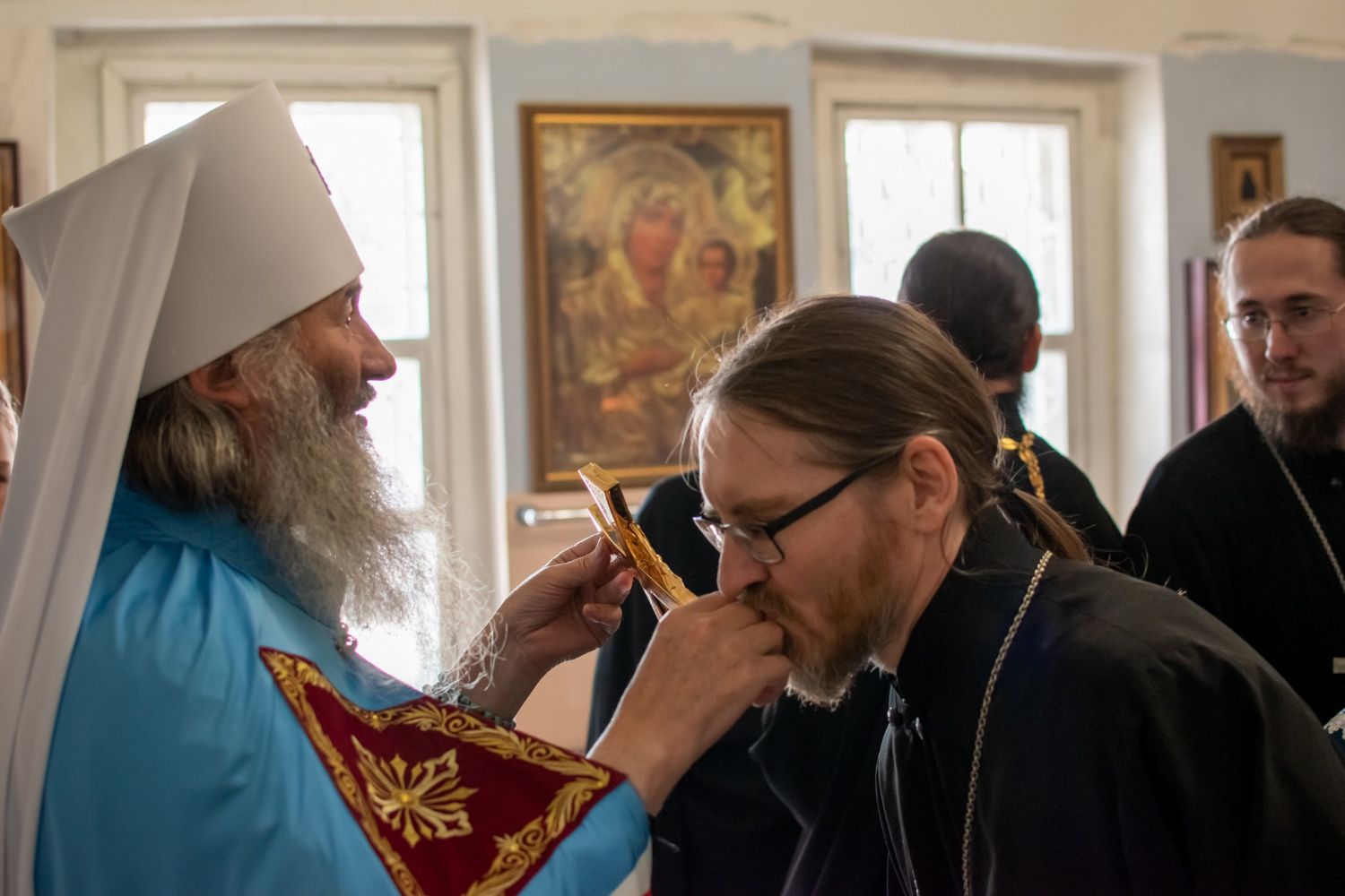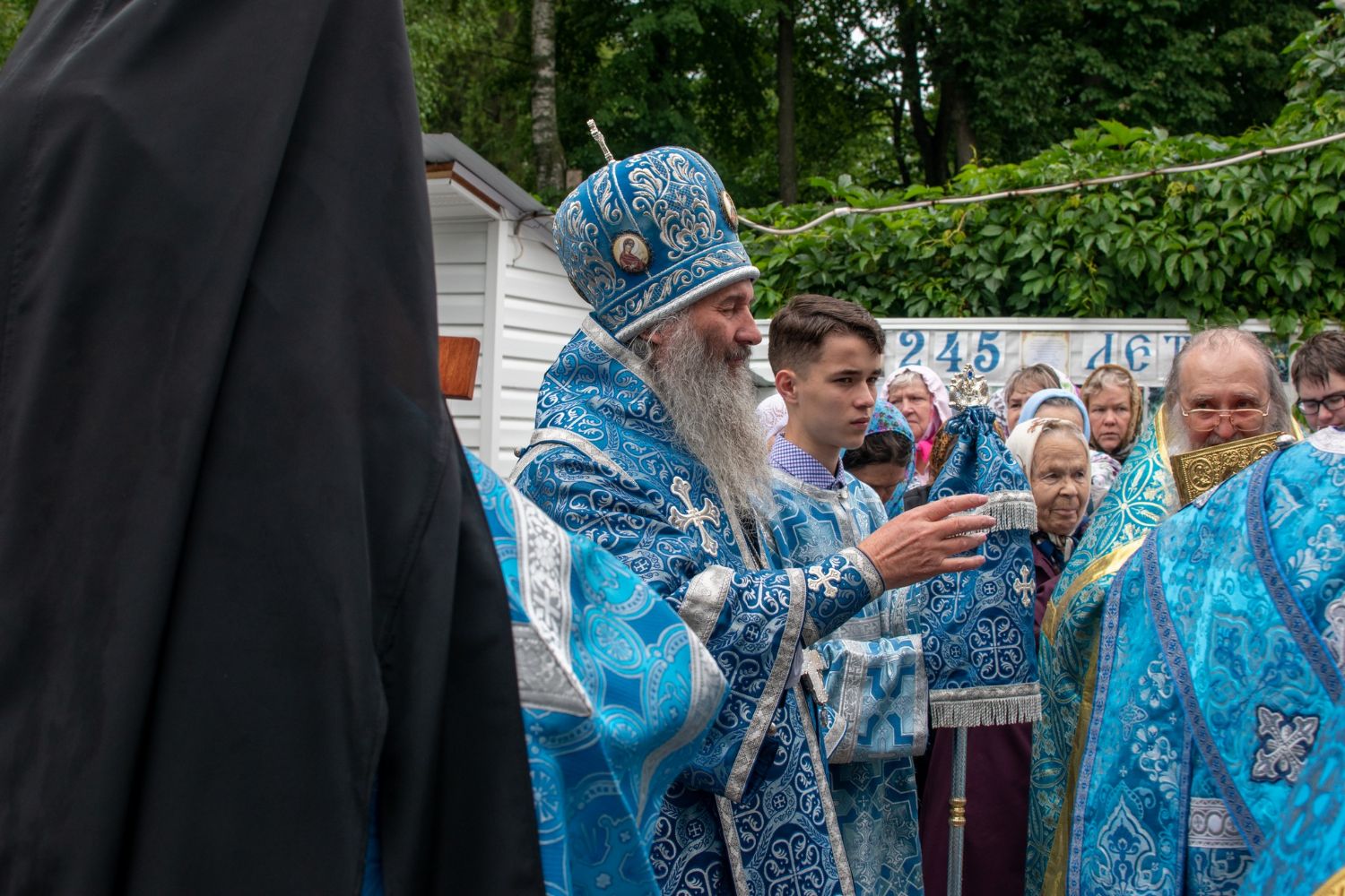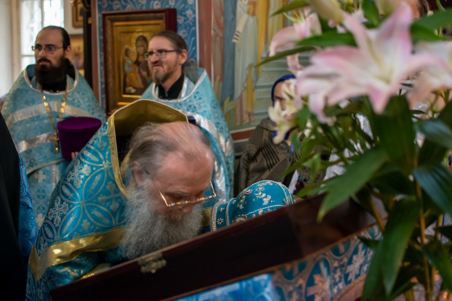 По окончании Литургии был отслужен молебен с крестным ходом вокруг храма, кроплением святой водой и чтением Евангелия. Владыка обратился к собравшимся со словами о милостях Богоматери. Затем всем была предложена трапеза и дети воскресной школы исполнили стихи и песни.