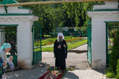 9 июля митрополит Иоанн возглавил Божественную литургию в том же храме. Владыке сослужили секретарь Йошкар-Олинского епархиального управления иеромонах Серафим (Пасанаев), настоятель Вознесенского собора протоиерей Евгений Кутырев, настоятель храма Державной иконы Божией Матери п. Медведево протоиерей Алексей Михайлов, настоятель храма Всех святых в земле Российской просиявших п. Советский протоиерей Николая Ярошевич, клирики Вознесенского собора иереи Олег Большаков, Димитрий Копылов, протодиакон Александр Конокпаев и клирик храма Рождества Пресвятой Богородицы с. Семеновка протодиакон Михаил Козловский. Песнопения исполнял хор храма под управлением регента Марины Богатыревой.
