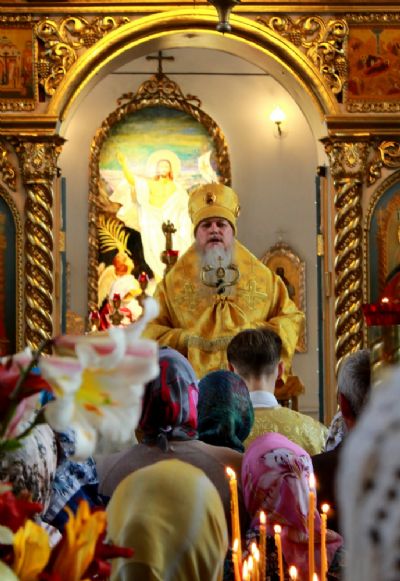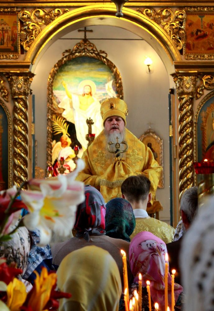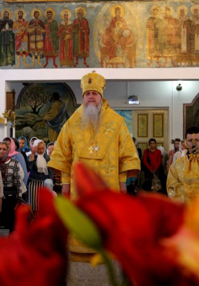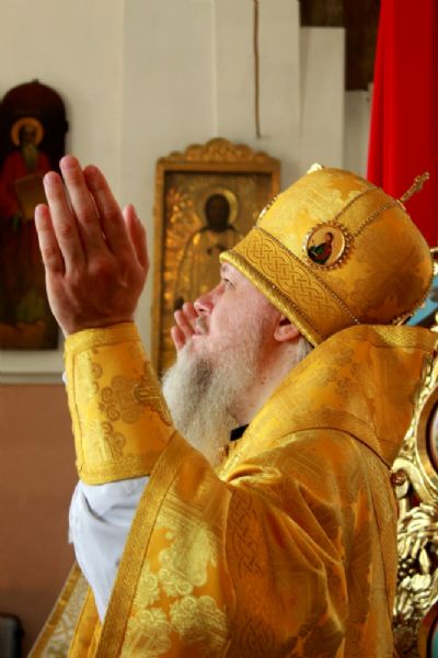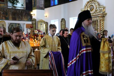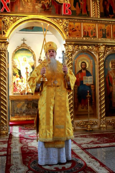 По окончании Литургии владыка Феофан возглавил чин славления празднику. После этого архипастырь обратился к верующим со словом и преподал архипастырское благословение.