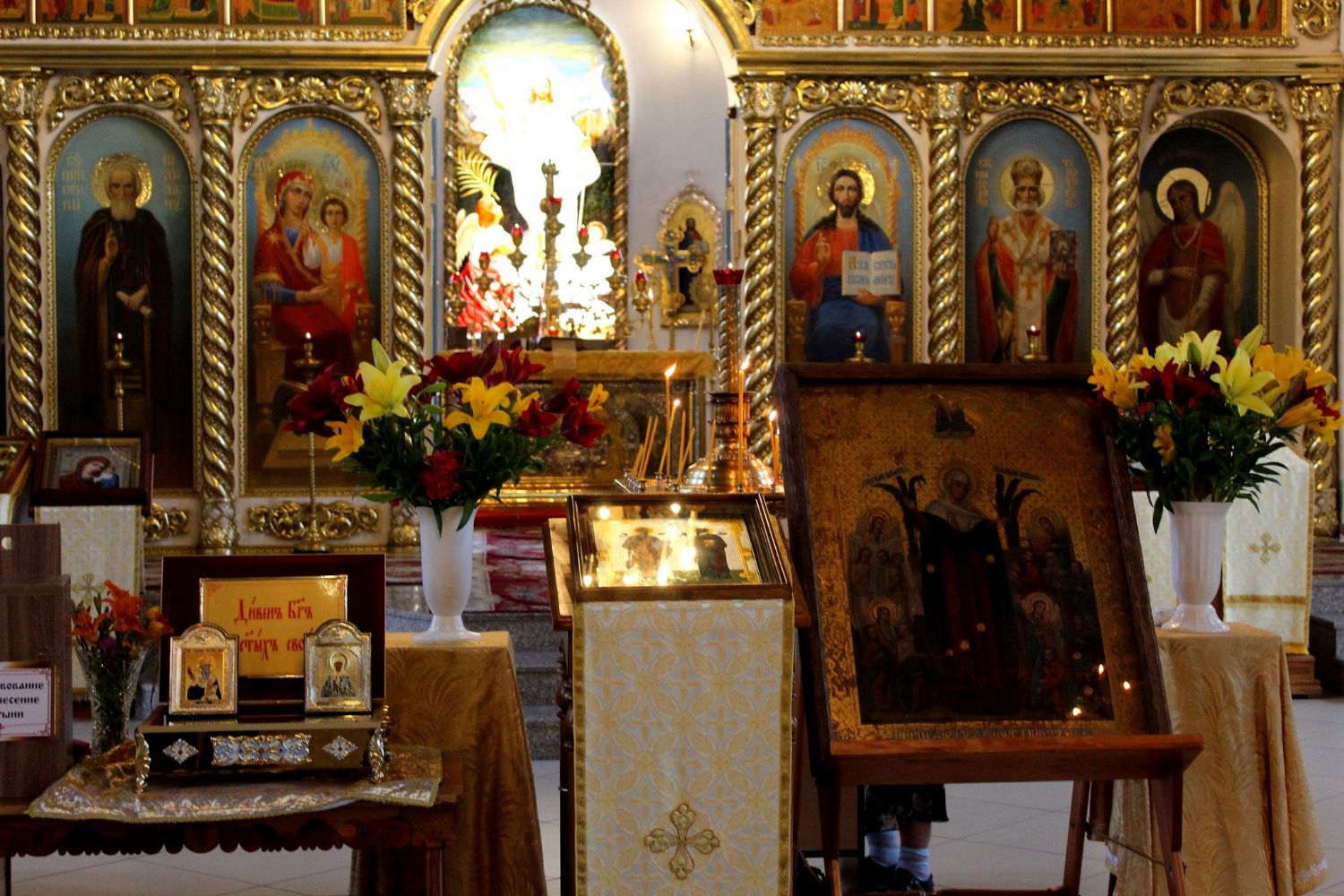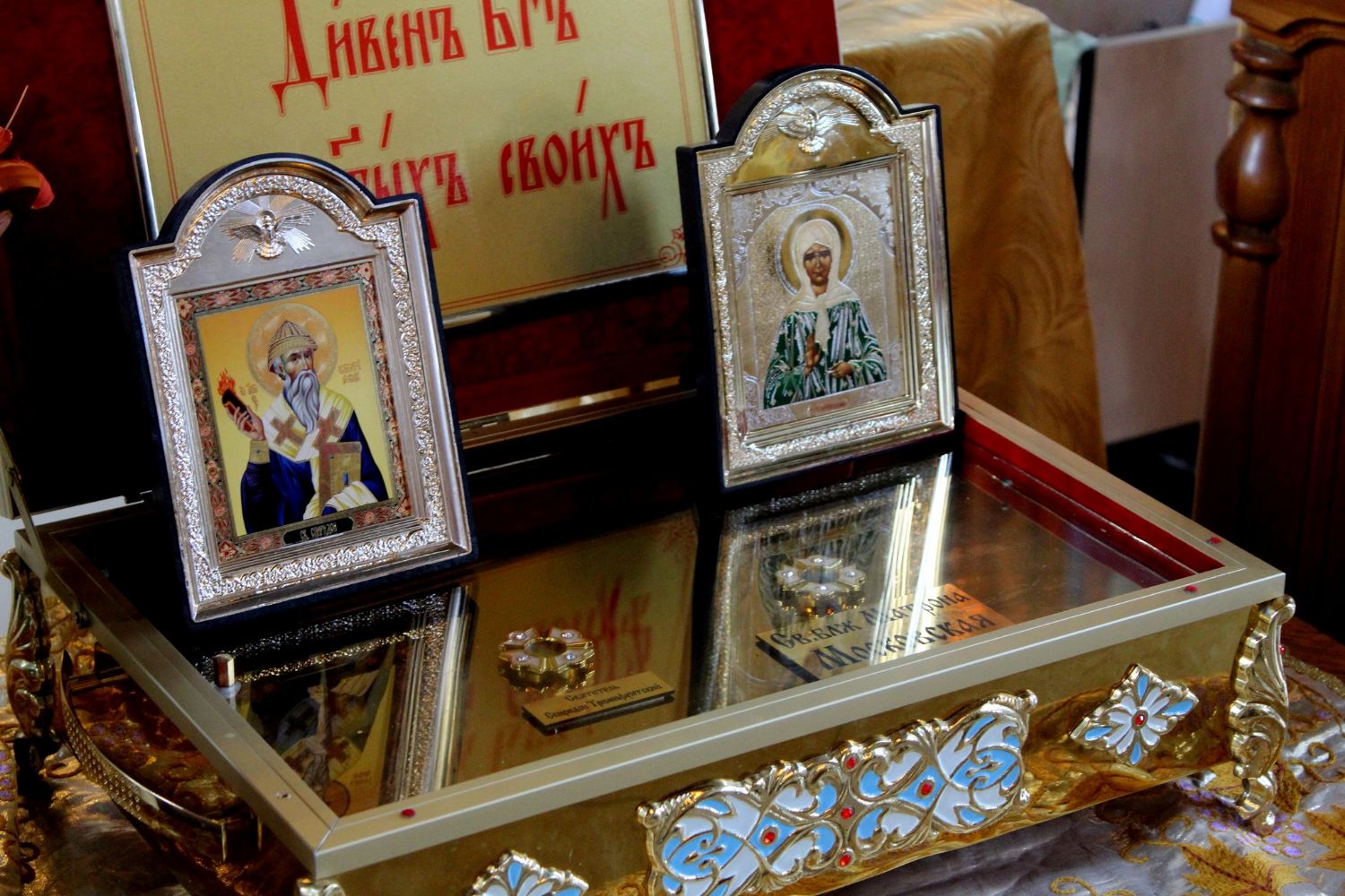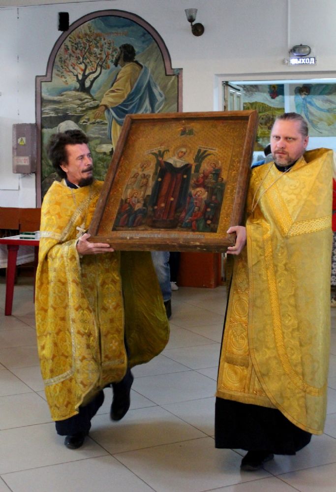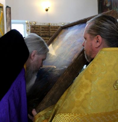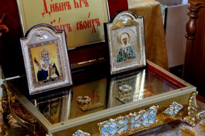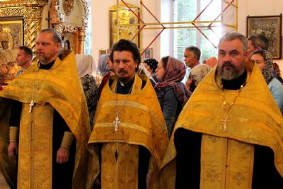 Накануне, 11 июля, перед Всенощным бдением в Никольском соборе, Его Преосвященство владыка Феофан в окружении духовенства, прихожан и гостей встретил икону Божией Матери «Всех скорбящих Радость» и ковчежец с мощами святителя Спиридона Тримифунтского и блаженной старицы Матроны Московской.