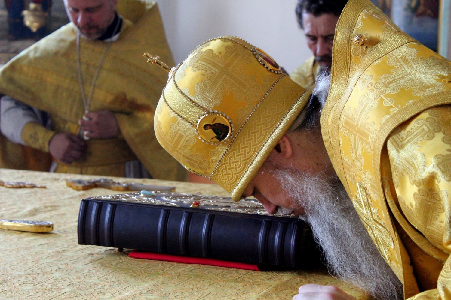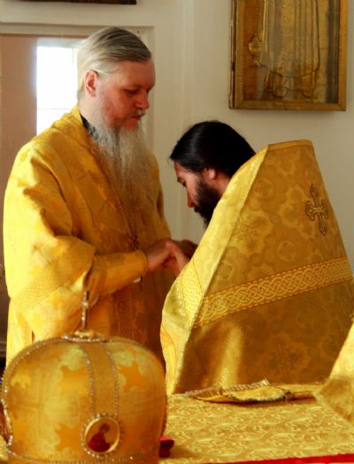 Накануне епископ Феофан совершил всенощное бдение в Никольском соборе г. Волжска.