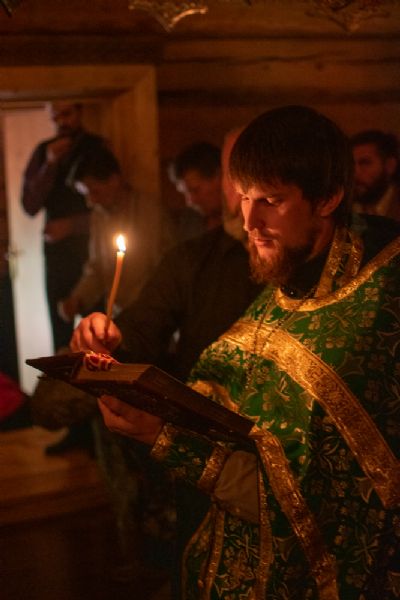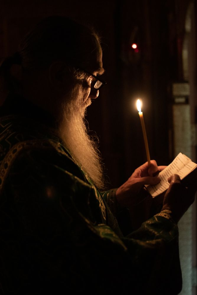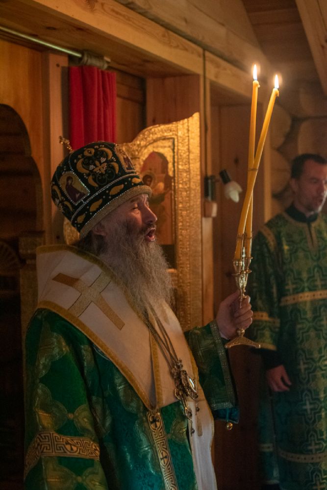 Богослужение началось торжественной встречей Владыки и облачением в центре храма. За богослужением читались отрывки из послания апостола Павла к Галатам о плодах Духа и из Евангелия от Матфея нагорная проповедь и заповеди блаженства.