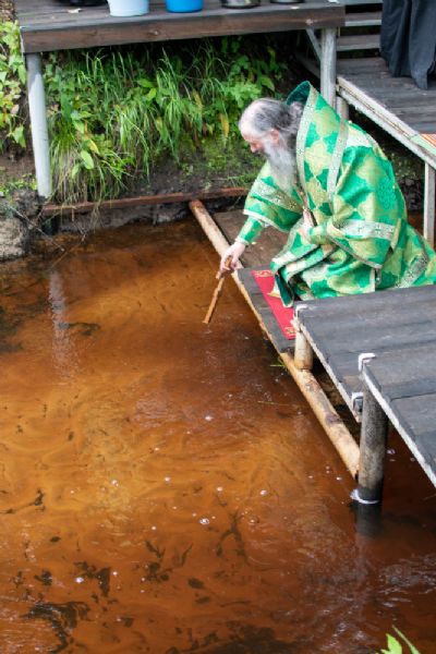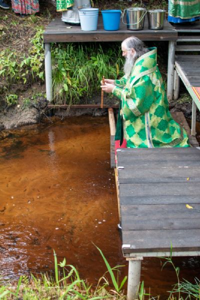После Литургии прошел водосвятный молебен на берегу р. Студенки и крестный ход вокруг храма с кроплением святой водой.