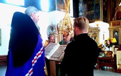 Его Преосвященству сослужили клирики собора и протоиерей Александр Михайлов, настоятель храма иконы Божией Матери «Всех скорбящих Радость».