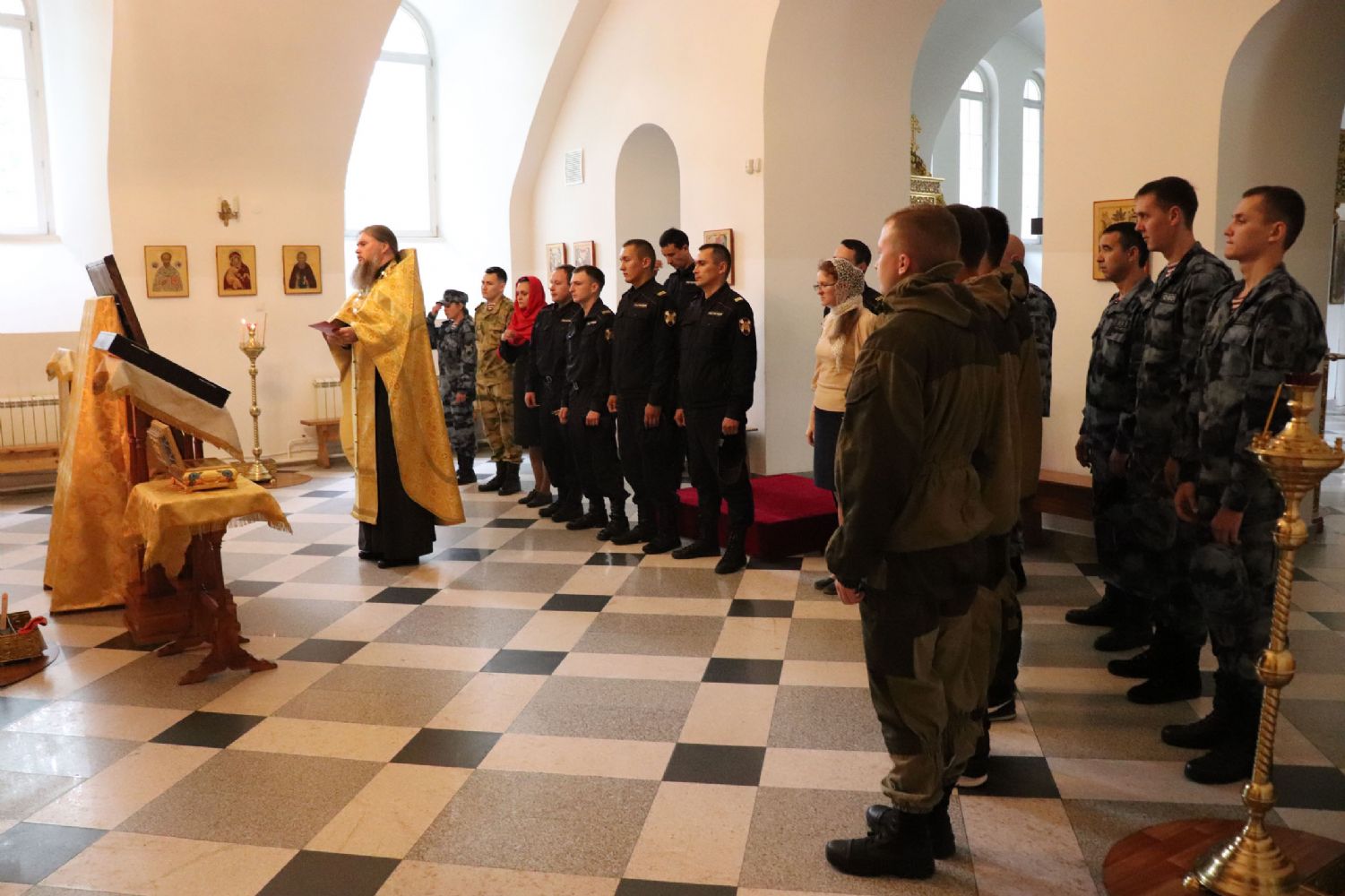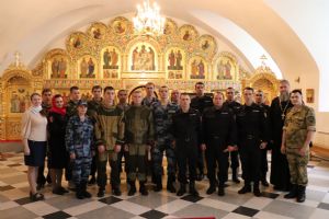 Молебное пение совершил настоятель храма, протоиерей Александр Бачурин, он поздравил росгвардейцев с праздником и обратился к ним со словами наставления: «Вера дает добрую надежду, дает возможность несмотря ни на что стоять за своих родных и близких, за друзей, за товарищей, за матушку - Святую Русь, находить в себе силы, чтобы снова и снова быть могучим человеком, богатырем и встать на защиту своего Отечества, на защиту тех, кому тяжело, и кому плохо. Мы благодарны вам за службу наши современные богатыри, и желаем вам спокойствия, трезвенности принятия решений, внутренней собранности, мужества, мира и добра», - отметил священнослужитель.
