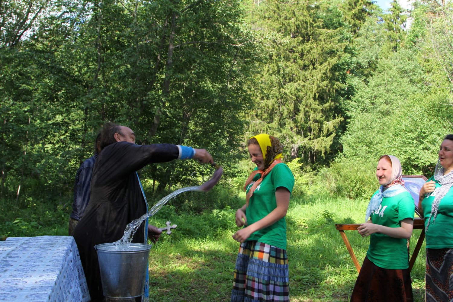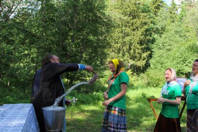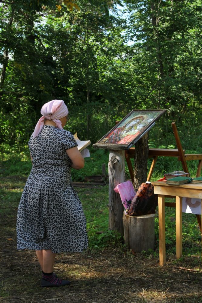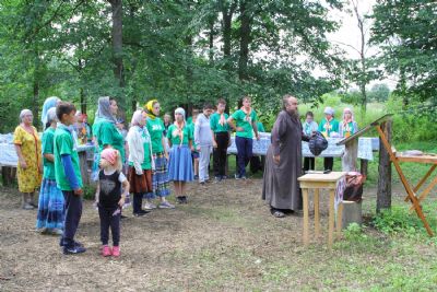 Место для лагеря выбрано прекрасное. Находится он у подножия склона, густо поросшего сосновым лесом. Именно здесь в свое время появилась одна из первых на приходе часовен с купальней над источником, освященным в честь равноапостольного князя Владимира.