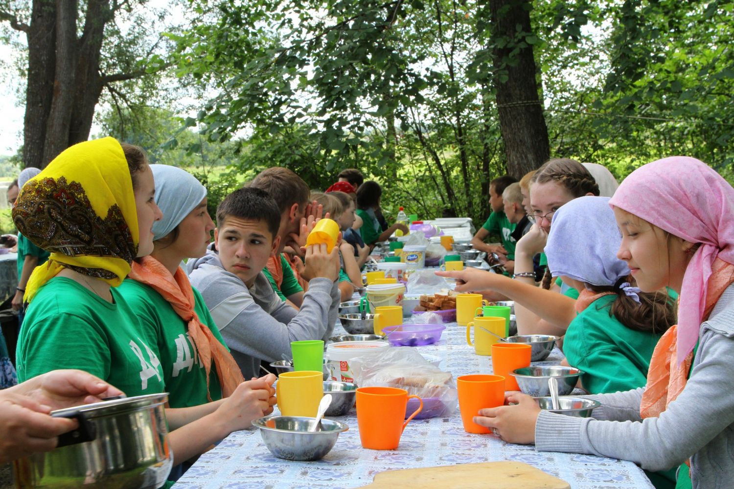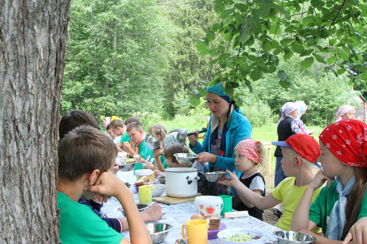 Поэтому на этот раз отец Николай тут же собрал всех на общую молитву. Молитва и взрослых, и детей была горяча и искренна. И после молебна темные грозовые тучи еще долго витали вокруг. В соседней деревне, меньше чем за километр от лагеря, прошумел ливень, а в лагере - лишь летний грибной дождичек. Дети ему даже обрадовались. Богородица явила Свою милость. Совершать молебен Пресвятой Богородице каждый день взяли за правило. Ну, а общая молитва перед и после еды, утреннее и вечернее правило – это уже закон православного детского лагеря.