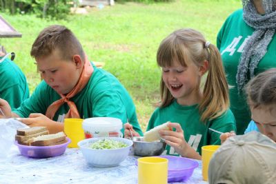 Началась смена с трудового десанта: поставили палатки, помогли поварам с обустройством полевой кухни, наносили воды из источника, заготовили дрова. Надо было и готовиться к будущим занятиям, помочь в оборудовании полосы препятствий. Все делалось собственными руками под контролем взрослых.